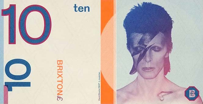 El billete de 10 libras de Brixton, con la imagen de David Bowie. Fuente: BrixtonPound.org