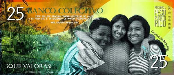 Los pesos de Puerto Rico son una de las miles de monedas comunitarias que se utilizan alrededor del mundo para facilitar los intercambios de forma independiente a los bancos y gobiernos. Una de las más famosas quizá sea la libra de Brixton, la cual circula en el barrio londinense desde 2009 como una alternativa no oficial a la libra esterlina. Su objetivo es mantener los recursos en el ámbito local y evitar que los pequeños negocios de Brixton sucumban ante las cadenas. Otros ejemplos de monedas sociales son las Palmas brasileñas, el BerkShare de Massachusetts y los bancos de tiempo, que se han difundido a muchos países con la premisa de que una hora de trabajo de cualquier persona tiene el mismo valor, en contraposición a la jerarquización del trabajo por clases. En México se ha experimentado con decenas de monedas comunitarias, como el Amanatli, en Guanajuato; el Mixiuhca, en la Ciudad de México, o el Túmin, que nació en la comunidad El Espinal en Veracruz, pero se ha expandido a muchos otros estados.