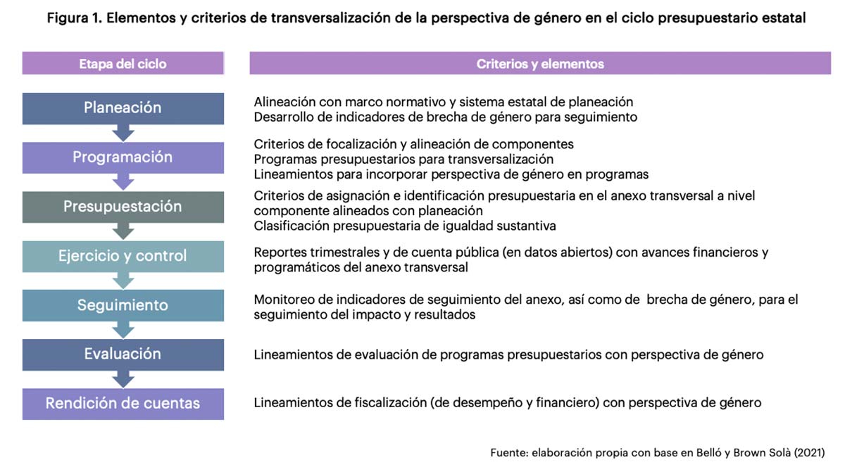 Además, se debe avanzar hacia el cierre del ciclo presupuestario en la transversalización de la perspectiva de género. Esto incluye la revisión profunda de los programas presupuestarios existentes, con criterios para el desarrollo de nuevos programas, que pongan en el centro la participación sustantiva de las personas fuera de las instituciones gubernamentales; así como el avance hacia la evaluación y fiscalización de dichos programas desde la perspectiva de género.
