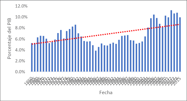 (Como porcentaje del PIB de 1950 a 2015)
