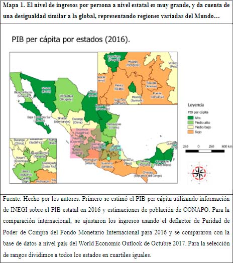 Mapa 1. El nivel de ingresos por persona a nivel estatal es muy grande, y da cuenta de una desigualdad similar a la global, representando regiones variadas del Mundo…