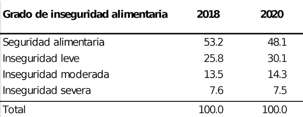Estado de la seguridad alimentaria en México, 2018-2020